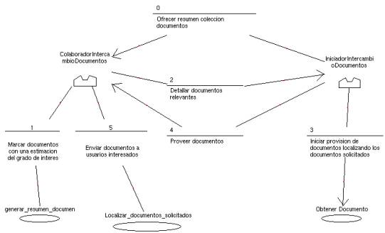 Ilustración 166. Diagrama de colaboración para la interacción intercambio de documentos interesantes