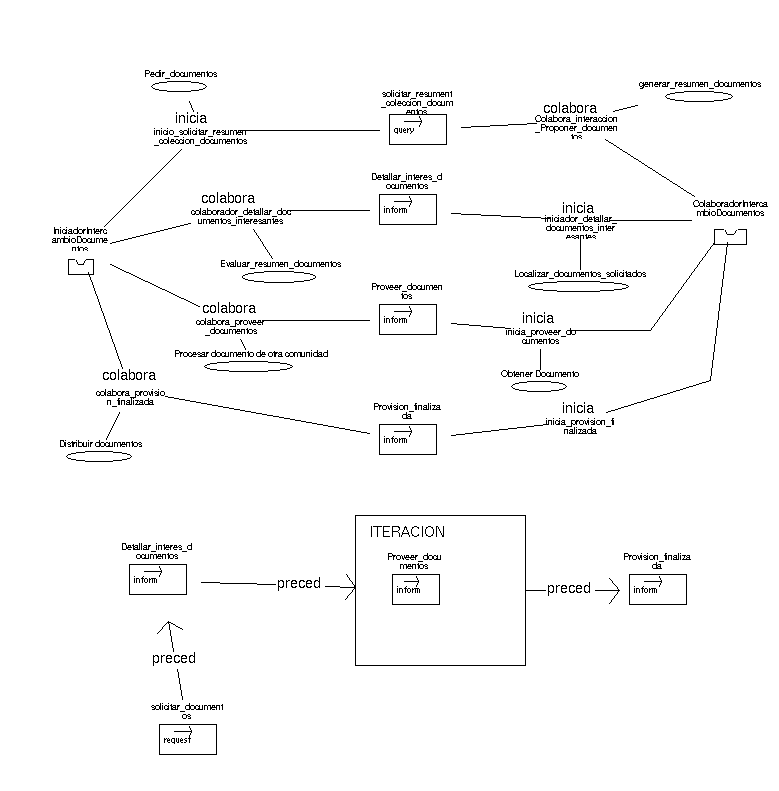 Obtener Documento | Tarea | Toma un documento de la comunidad y lo transforma en documento solicitado. Este documento es una version que omite posibles atributos del documento inicial de caracter privado. Cuando se han consumido todos los documentos, se genera un hecho Provisino finalizada.Tambien es posible que se produzca este hecho por motivos de rendimiento. La transmision de los documentos es costosa si se trata de documentos de 100K, por ejemplo. Por ello, el agente puede decidir abortar la transmision. |
