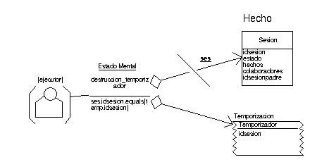 | Descripcion | Describe una sesion en la que dos o mas actores interactuan. Los colaboradores son los indicados en el slot "colaboradores". Cada hecho perteneciente a la sesion se agrega al slot "hechos". El estado de la sesion se almacena en "estado". Es posible iniciar sesiones dentro de sesiones. Para indicar cual es la sesion padre, se ha aņadido un slot a tal efecto.  |