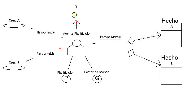 El ejemplo utilizado es el modelado de un agente planificador de tareas. El agente sabe ejecutar dos tipos de tareas: tarea A y tarea B. De la utilización de éstas depende que se alcance el objetivo O (Ilustración 8).